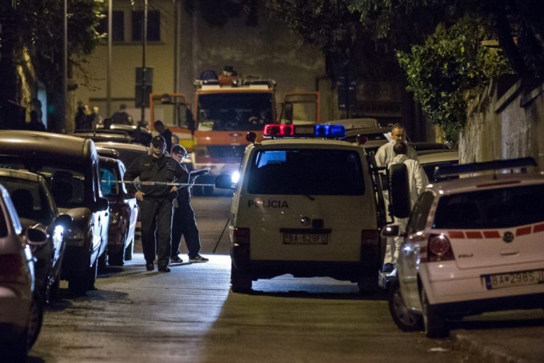 Zaisťovanie stôp na Bradlianskej ulici, kde sa v piatok popoludní strieľalo. Foto: SITA/Jozef Jakubčo