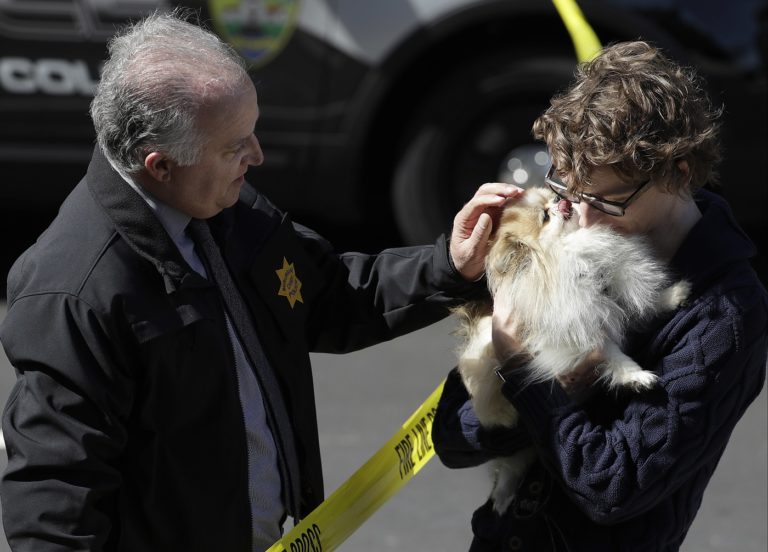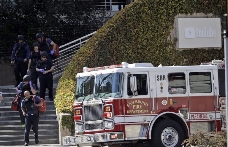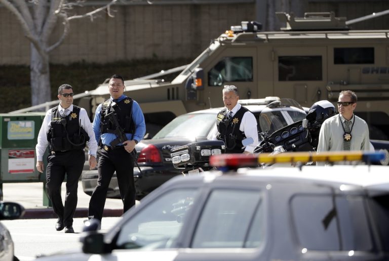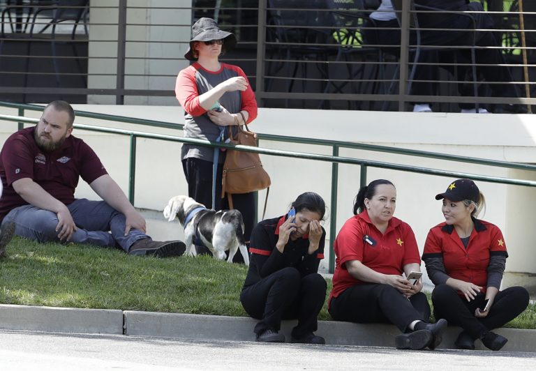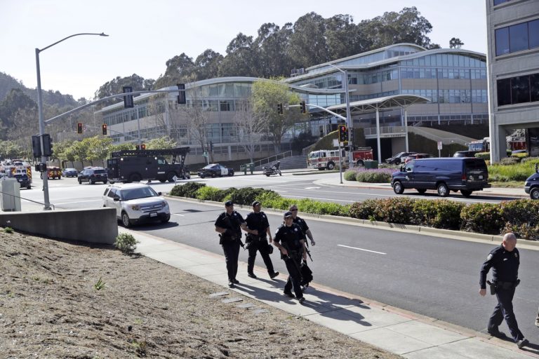 Žena strieľala v budove YouTube v kalifornskom meste San Bruno. Zábery po príchode polície na miesto činu a evakuácii budovy. Foto: SITA/AP