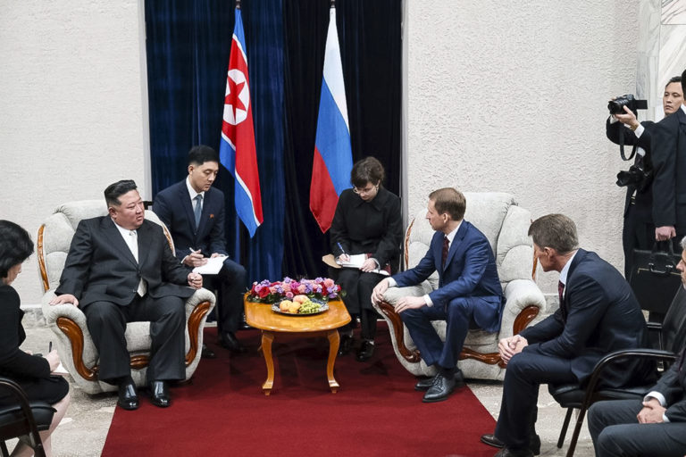 Ruský prezident Vladimir Putin a vodca Severnej Kórey Kim Čong-un sa stretli v Rusku. Foto: Vladimir Smirnov, Sputnik, Kremlin Pool Photo via AP