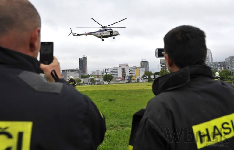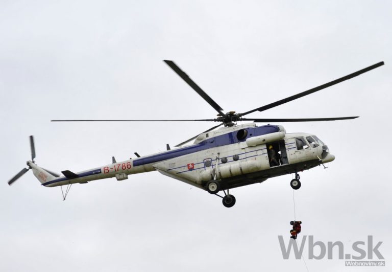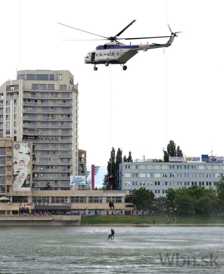 Ukážka zásahu leteckých záchranárov, zlaňovanie z vrtuľníka počas podujatia Deň hasičov v areáli pri Štrkoveckom jazere. Bratislava, 17. máj 2014. Foto: SITA/Ján Slovák