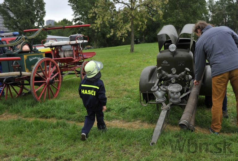 Ukážky historickej hasičskej techniky počas podujatia Deň hasičov v areáli pri Štrkoveckom jazere. Bratislava, 17. máj 2014. Foto: SITA/Ján Slovák