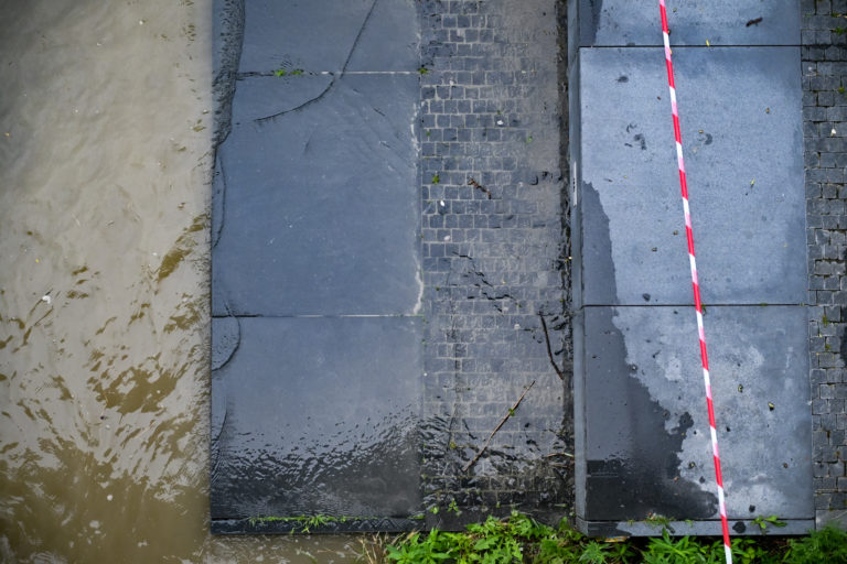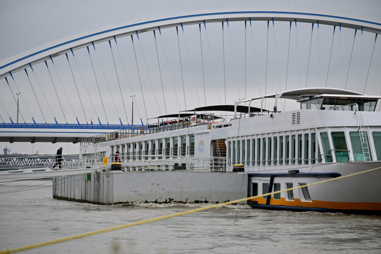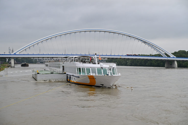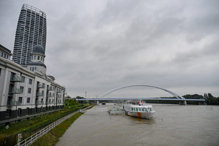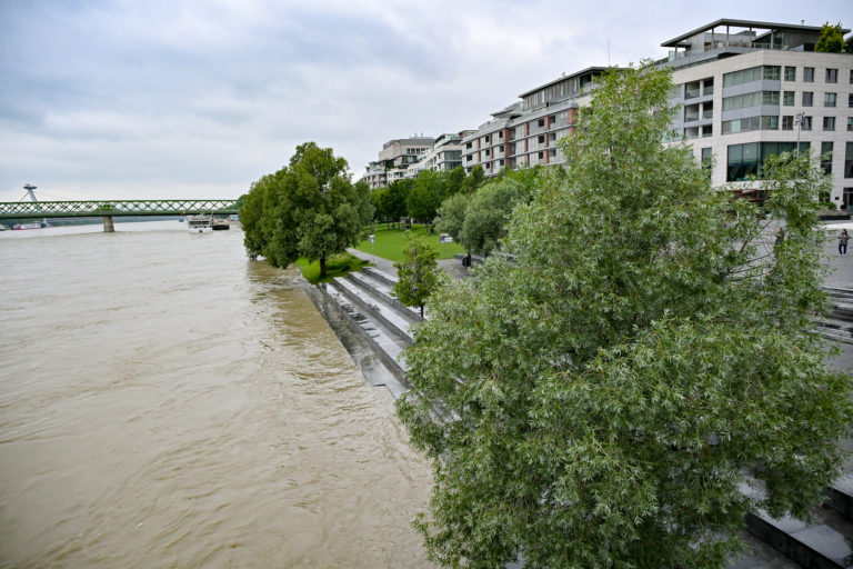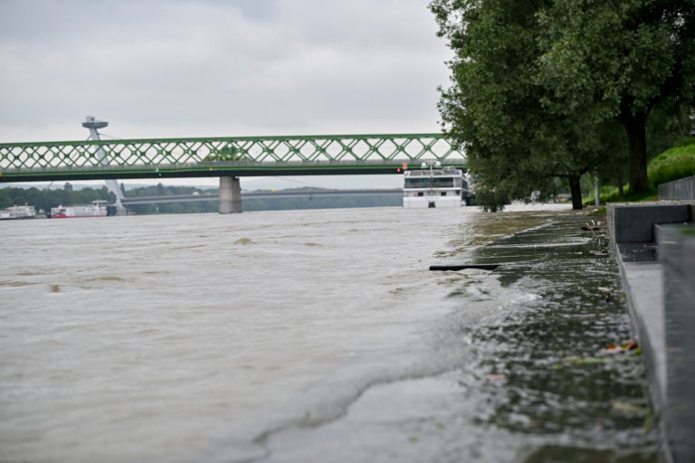 Stúpajúca hladina rieky Dunaj na Nábreží Eurovea v Bratislave. Bratislava, 4. jún 2024. Foto: SITA.