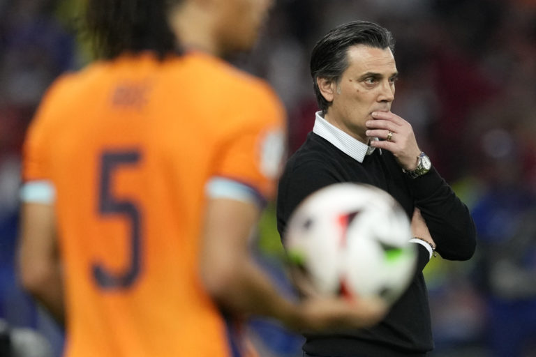Zamyslený taliansky tréner Turecka Vincenzo Montella počas štvrťfinálového zápasu na ME vo futbale 2024 proti Holandsku. Berlín, 6. júl 2024. Foto: SITA/AP