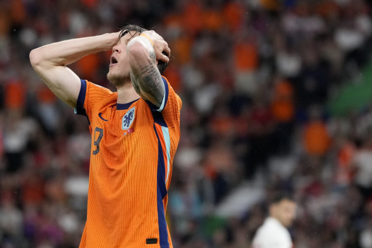 Wout Weghorst z Holandska po nevydarenej akcii počas štvrťfinálového zápasu na ME vo futbale 2024 proti Turecku. Berlín, 6. júl 2024. Foto: SITA/AP