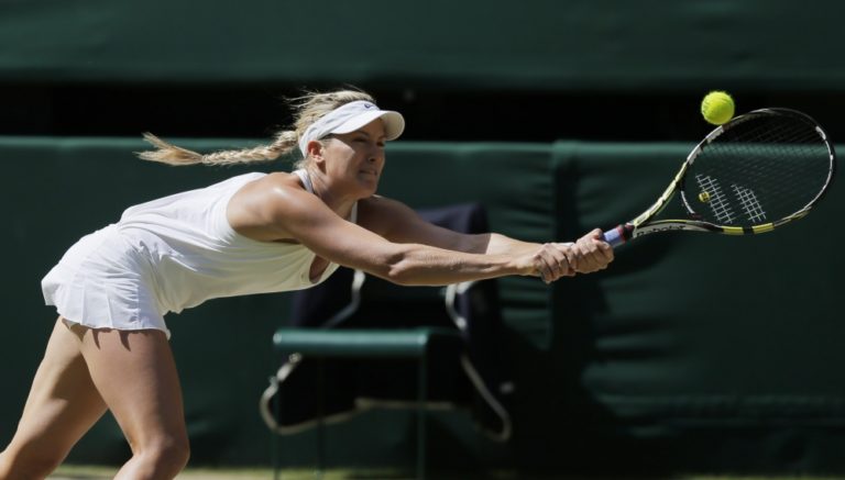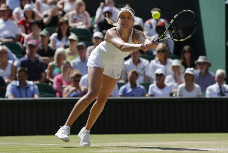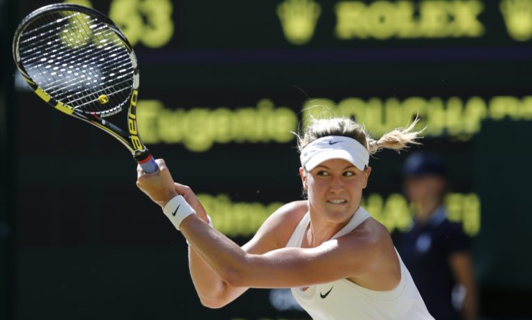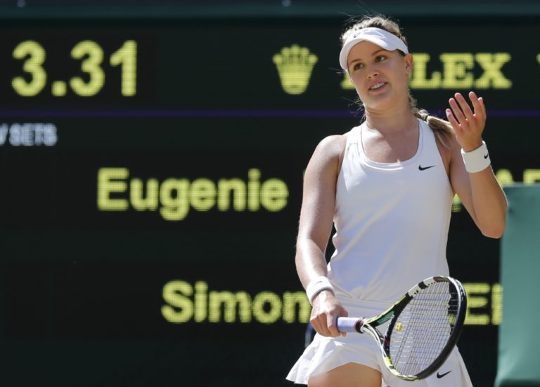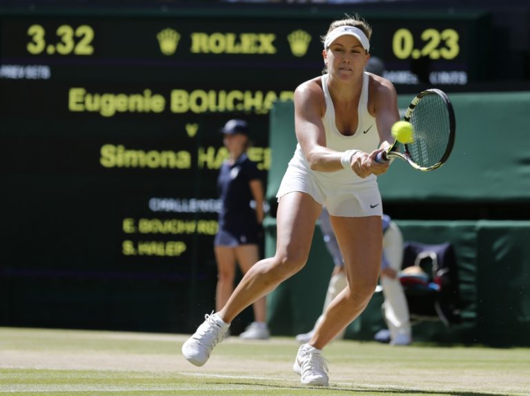 Kanadská tenistka Eugenie Bouchardová počas semifinálového zápasu vo Wimbledone, v ktorom porazila Rumunku Simonu Halepovú 7:6, 6:2. Foto: SITA/AP