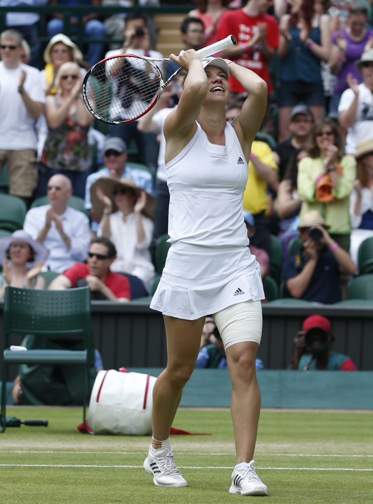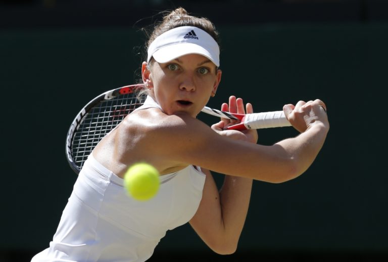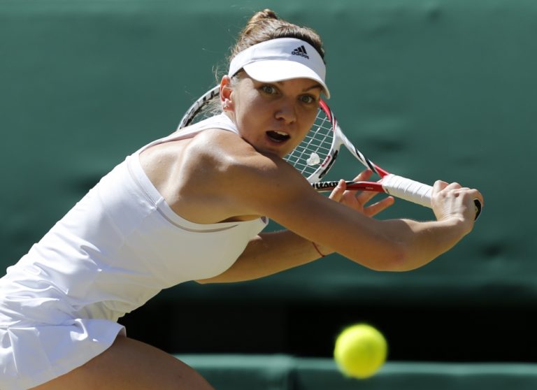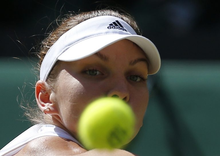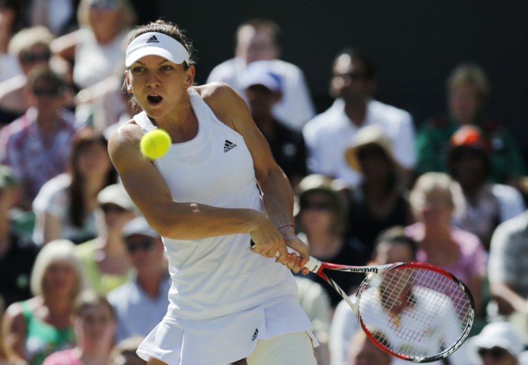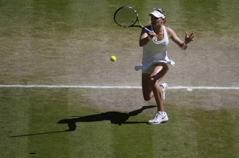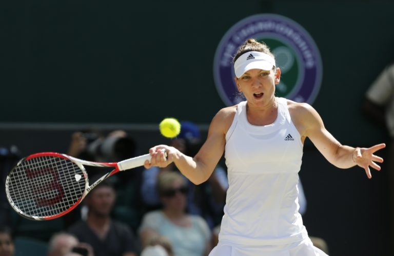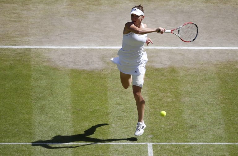 Rumunská tenistka Simona Halepová počas semifinálového zápasu vo Wimbledone, v ktorom prehrala s Kanaďankou Eugenie Bouchardovou 6:7, 2:6. Foto: SITA/AP