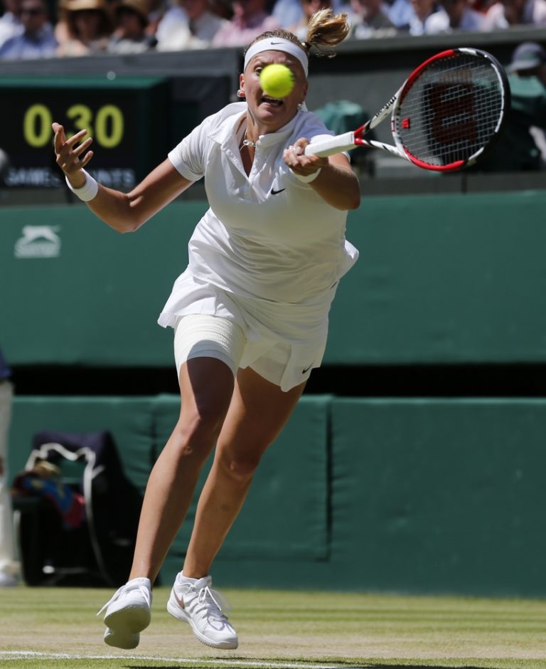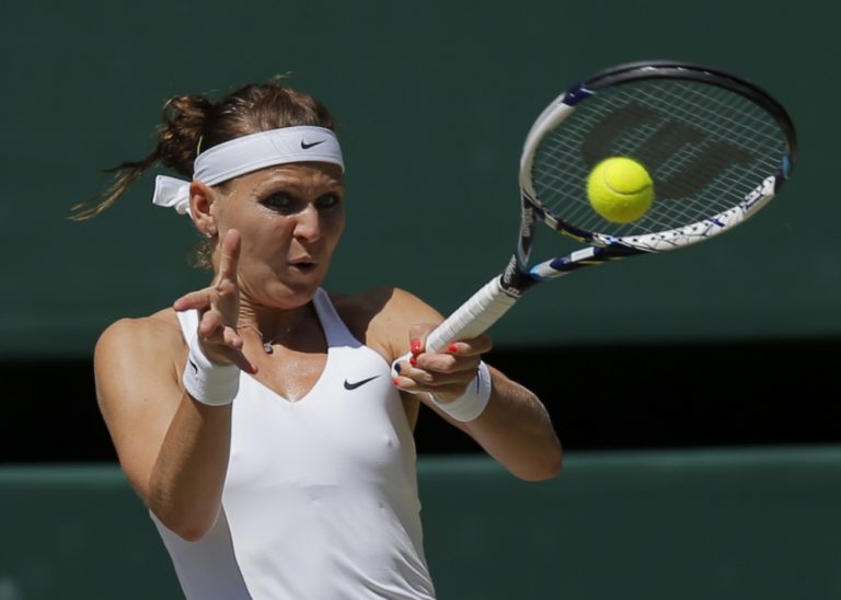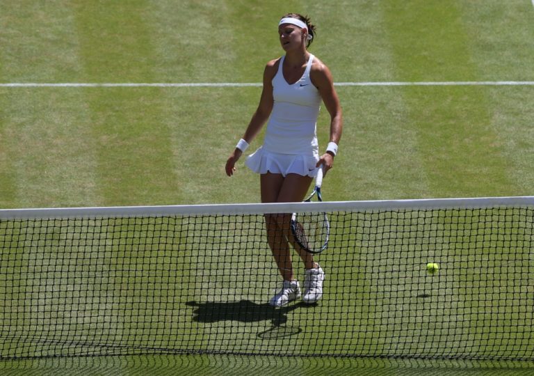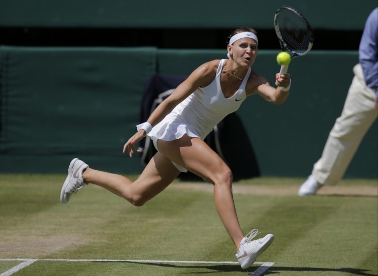 Česká tenistka Lucie Šafářová počas semifinálového zápasu vo Wimbledone, v ktorom prehrala s krajankou Petrou Kvitovou. Foto: SITA/AP