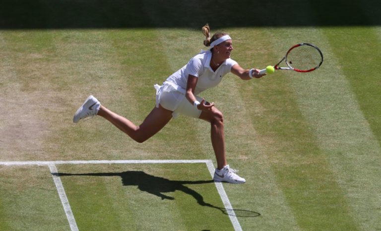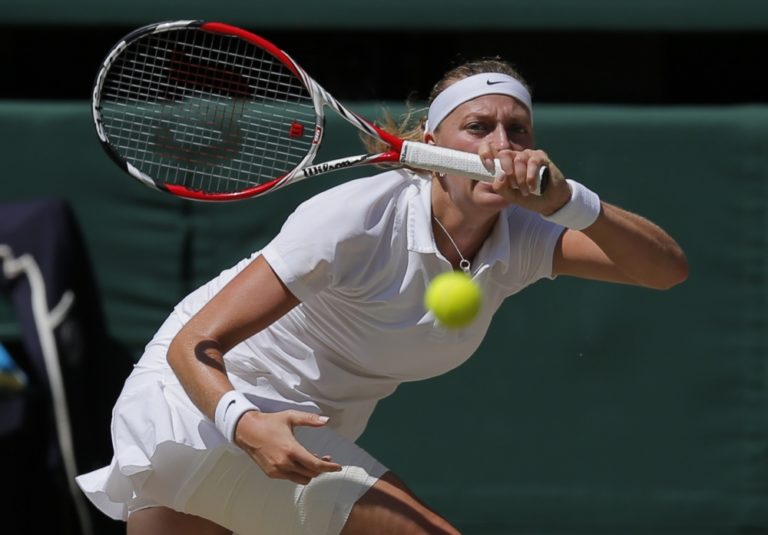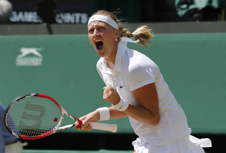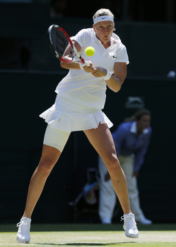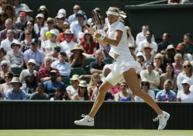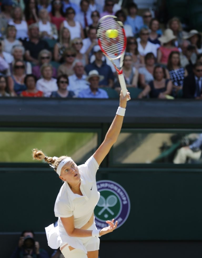 Česká tenistka Petra Kvitová počas semifinálového zápasu vo Wimbledone, v ktorom porazila krajanku Luciu Šafářovú. Foto: SITA/AP