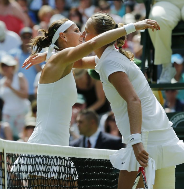 Češka Petra Kvitová si v semifinále Wimbledonu poradila s krajankou Luciou Šafářovou (na zábere) 7:6 (6), 6:1. Foto: SITA/AP