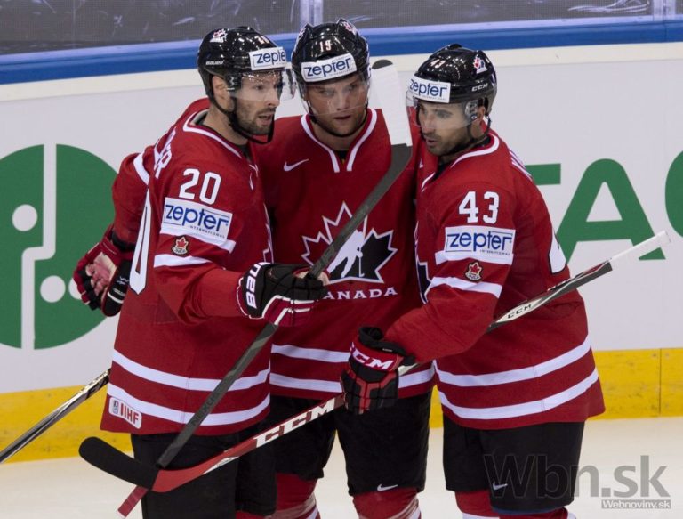 Radosť hráčov Kanady počas zápasu s Dánskom počas MS v Minsku. Foto: SITA/AP