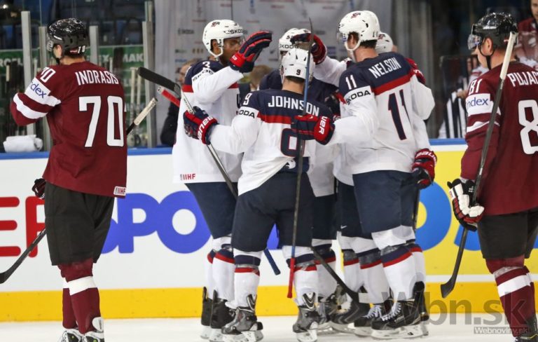 Radosť hráčov USA v zápase proti Lotyšsku na MS v Minsku. Foto: SITA/AP