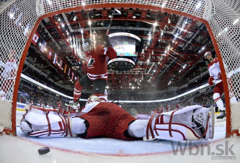 Kanaďan Matt Read sa raduje z góle v sieti dánskeho brankára Patricka Galbraitha počas štvrtkového zápasu na MS v hokeji. Foto: SITA/AP