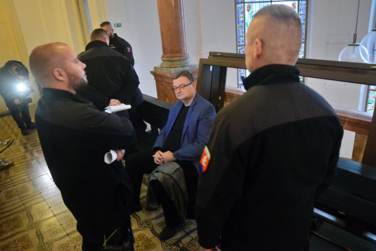 Obvinený vedúci IT oddelenia lotériovej spoločnosti Tipos Miloš Prelec pred začiatkom pojednávania, v rámci ktorého Špecializovaný trestný súd (ŠTS) rozhodoval o jeho vzatí do väzby kvôli obvineniu z trestného činu porušovania povinnosti pri správe cudzieho majetku a legalizácii príjmu z trestnej činnosti. Banská Bystrica, 29. november 2019. Foto: SITA/Jakub Julény.
