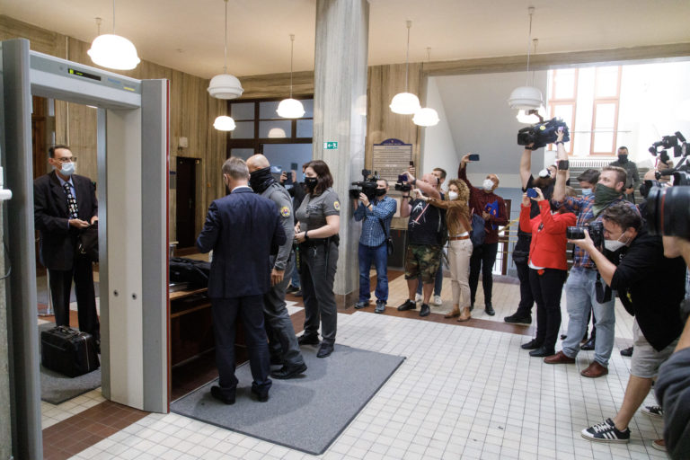 Obvinený bývalý generálny prokurátor Dobroslav Trnka (våavo) počas príchodu na hlavné pojednávanie s obvineným, ktorý je obžalovaný pre zločin zneužívania právomoci verejného činiteľa. Bratislava, 6. september 2021. Foto: SITA/Branislav Bibel