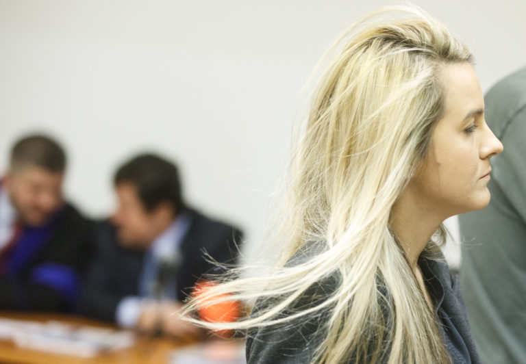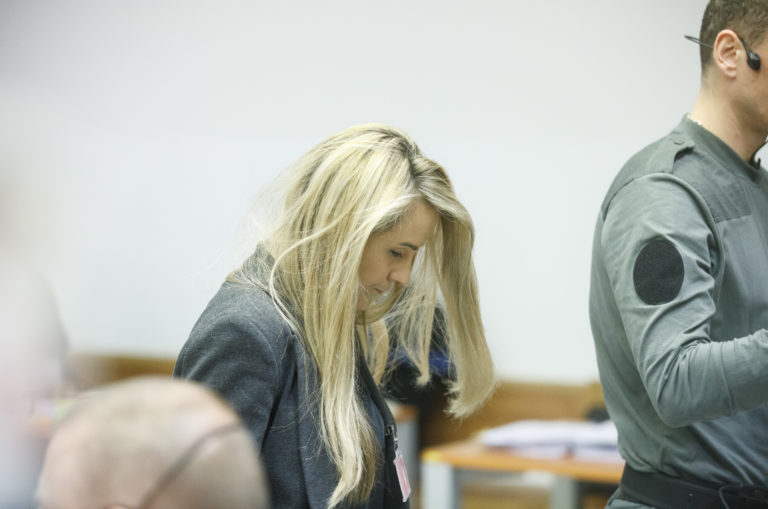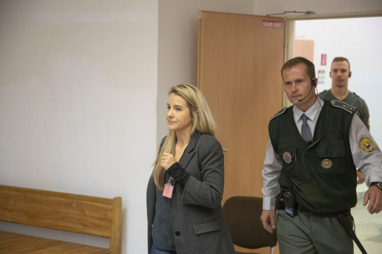 Dcéra podnikateľa Mariana K. Karolína Kočnerová počas hlavného pojednávania v kauze falšovania zmeniek TV Markíza v Ústave na výkon väzby a Ústave na výkon trestu odňatia slobody v Bratislave. Bratislava, 4. november 2019. Foto: SITA/Branislav Bibel