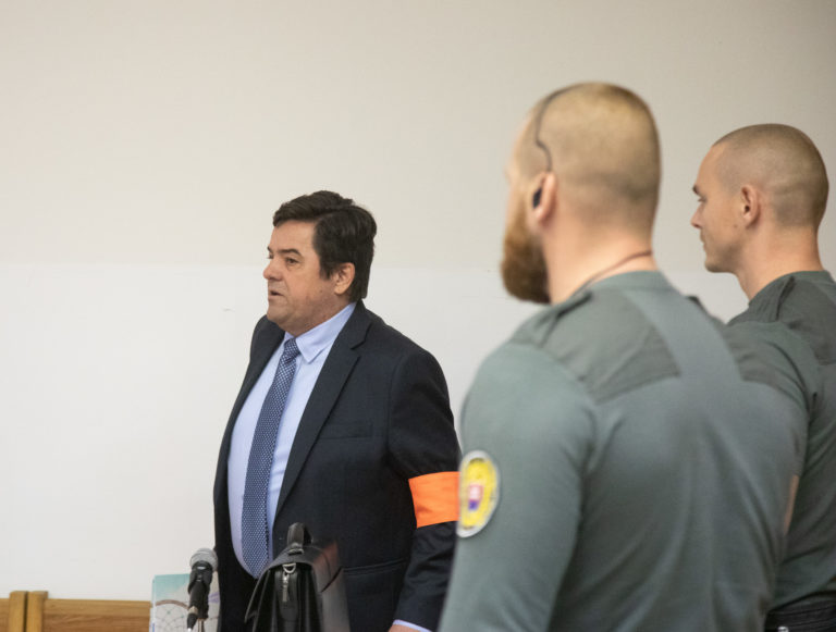 Exminister hospodárstva a bývalý riaditeľ TV Markíza Pavol R. počas príchodu na hlavné pojednávanie v kauze televíznych zmeniek. Pezinok, 24. júl 2019. Foto: SITA/Alexandra Čunderlíková