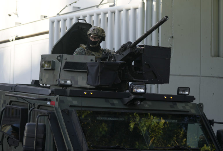 Polícia a vojenská hliadka Culiacan, štát Sinaloa, Mexiko. Štvrtková vládna operácia na zadržanie Ovidia Guzmána, syna väzneného drogového bossa Joaquína „El Chapa“ Guzmana, rozpútala prestrelky, pri ktorých zahynulo 10 vojakov a Podľa úradov 19 podozrivých členov drogového kartelu Sinaloa. Piatok 6. januára 2023. Foto: SITA/AP