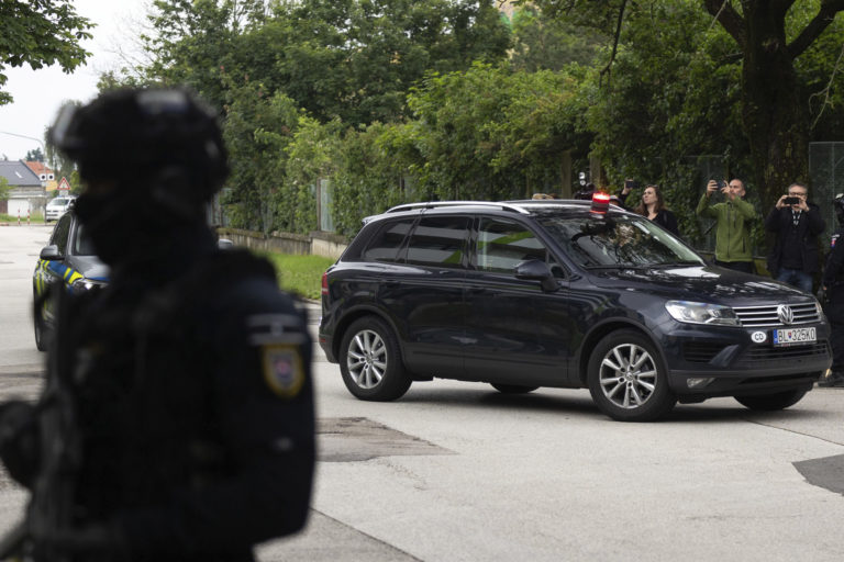 Bezpečnostné zložky odvážajú Juraja Cintulu obvineného z obzvlášť závažného zločinu úkladnej vraždy spáchanej v štádiu pokusu v prípade útoku na premiéra Roberta Fica z pojednávania zo Špecializovaného trestného súdu (ŠTS) v Pezinku. Sudca sa stotožnil s prokurátorom, ktorý žiadal pre obvineného útekovú a preventívnu väzbu. Pezinok, 18. máj 2024. Foto: SITA/AP.