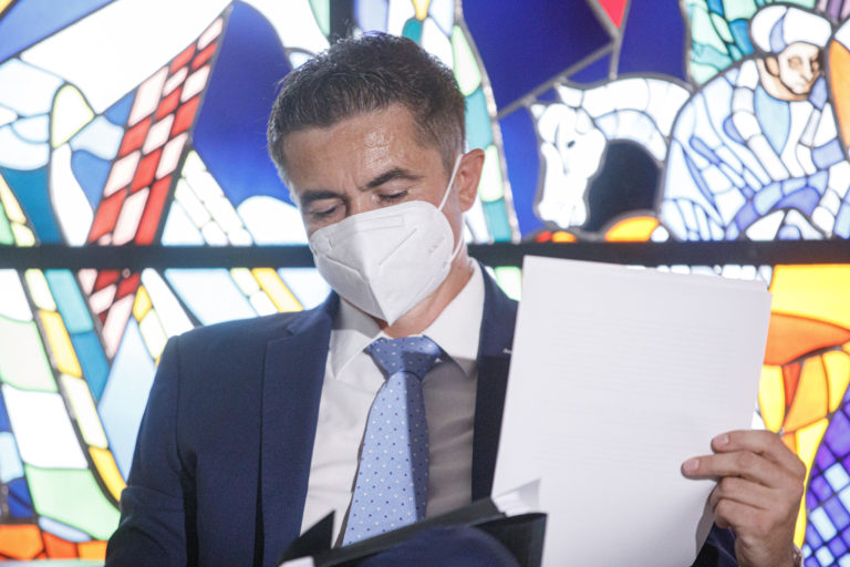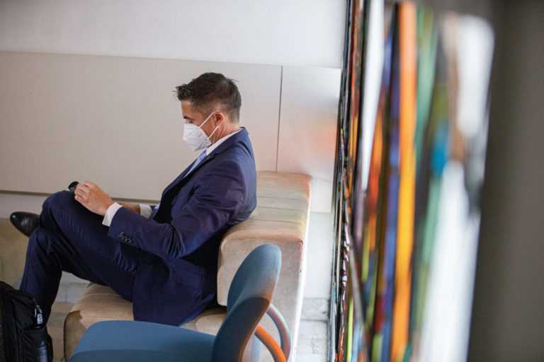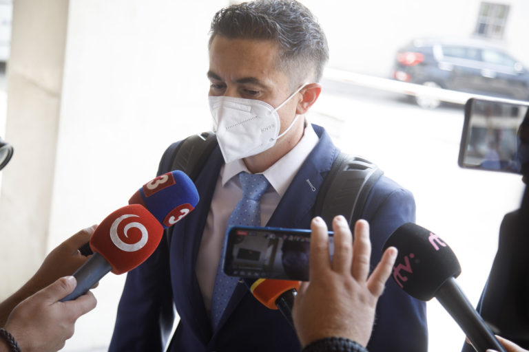 Obvinený bývalý štátny tajomník Radko Kuruc pred začatím verejného zasadnutia o väzbe pre obvinených Radka Kuruca a spol. v kauze Mýtnik 3 na Najvyššom súde. Bratislava, 16. august 2021. Foto: SITA/Branislav Bibel