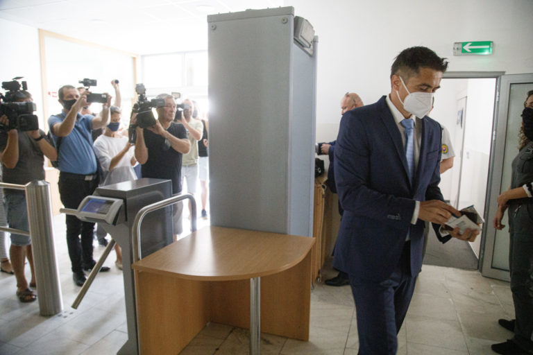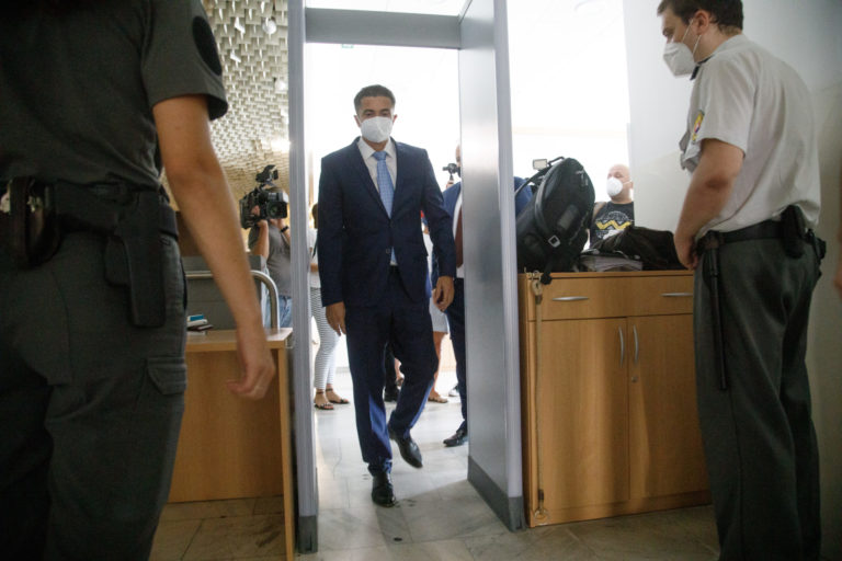 Obvinený bývalý štátny tajomník Radko K. počas príchodu na verejné zasadnutie o väzbe Radka K. a spol. v kauze Mýtnik 3 na Najvyššom súde. Bratislava, 16. august 2021. Foto: SITA/Branislav Bibel