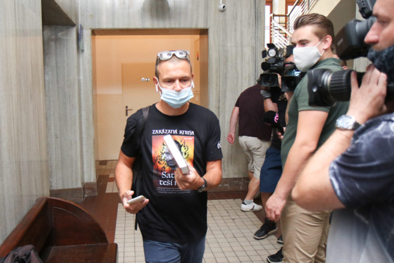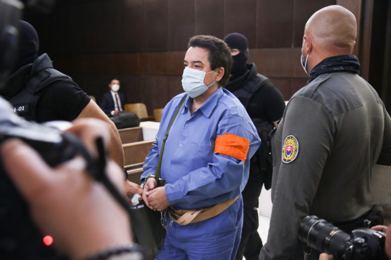 Obvinený podnikateľ Marian Kočner (uprostred) počas príchodu na hlavné pojednávanie v kauze Motáky na Okresnom súde v Bratislave. Bratislava, 10. august 2021. Foto: archívne, SITA/Alexandra Čunderlíková.