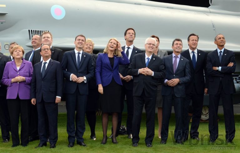Spoločná fotografia účastníkov summitu Severoatlantickej aliancie (NATO) vo Walese, za účasti podpredsedu vlády a ministra zahraničných vecí a európskych záležitostí SR Miroslava Lajčáka. Oficiálnu delegáciu SR vedie prezident SR Andrej Kiska (vľavo dole). Foto: SITA/MZVaEZ SR