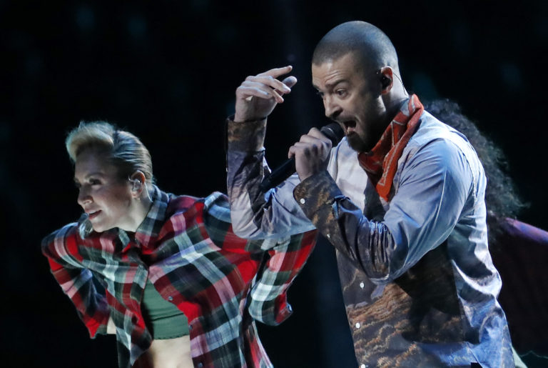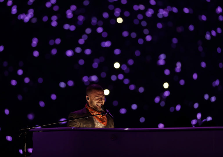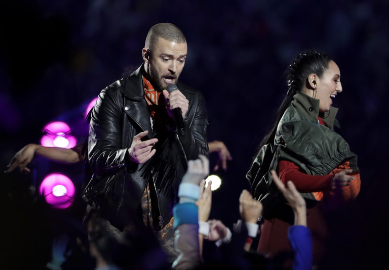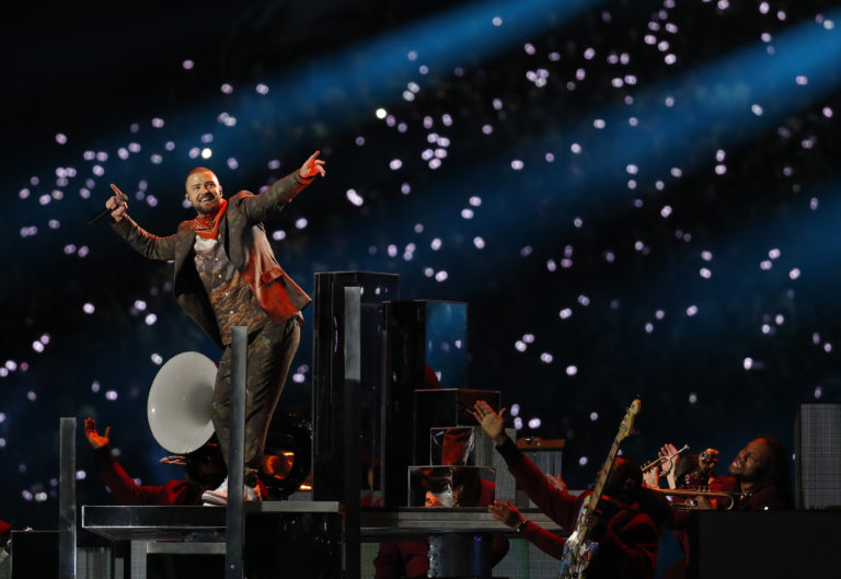 Justin Timberlake a jeho šou počas polčasovej prestávky zápasu o Super Bowl LII medzi tímami Philadelphia Eagles a New England Patriots. Minneapolis, 4. február 2018. Foto: SITA/AP.