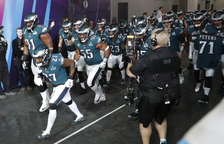 Hráči tímu Philadelphia Eagles pred zápasom o Super Bowl LII. Minneapolis, 4. február 2018. Foto: SITA/AP.