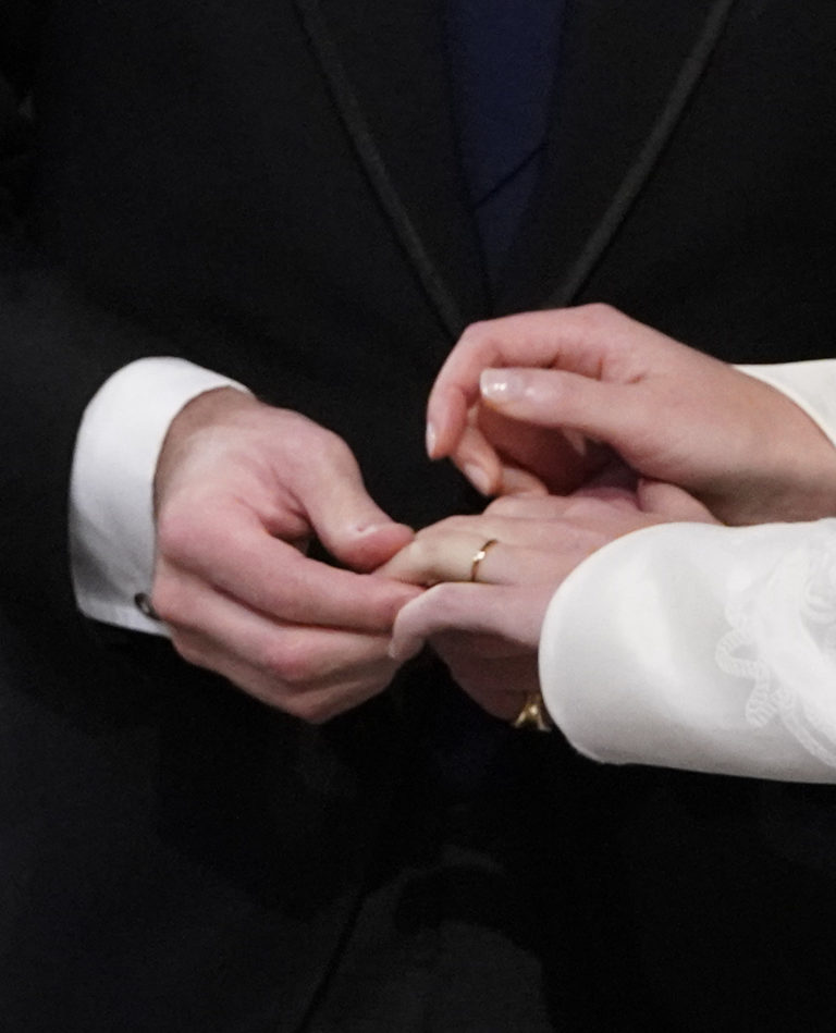Ženích navliekol neveste na prst obrúčku z waleského zlata, ktoré bolo darom od jej starej mamy, kráľovnej Alžbety II.