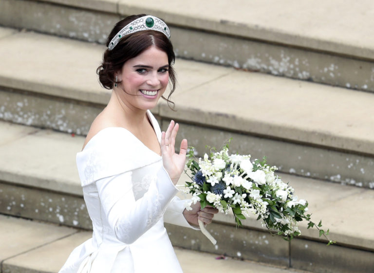 28-ročná princezná Eugenie mala vo vlasoch tiaru so smaragdmi, ktorú jej požičala kráľovná Alžbeta II.