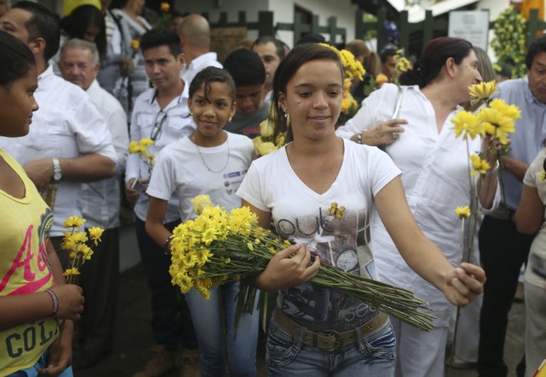 Mládež sa so známym autorom prišla rozlúčiť na symbolický pohrebný obrad pred jeho rodný dom v Aracatace, na Karibskom pobreží Kolumbie. Foto: SITA/AP