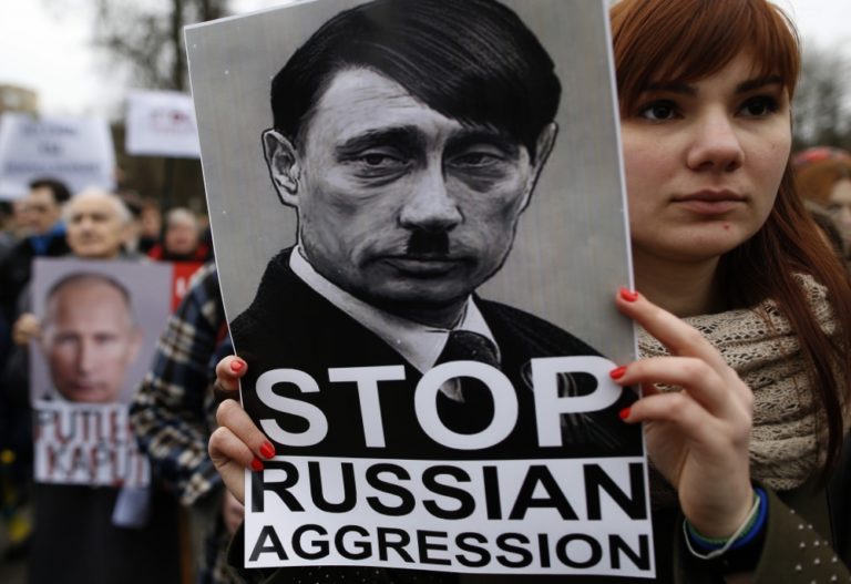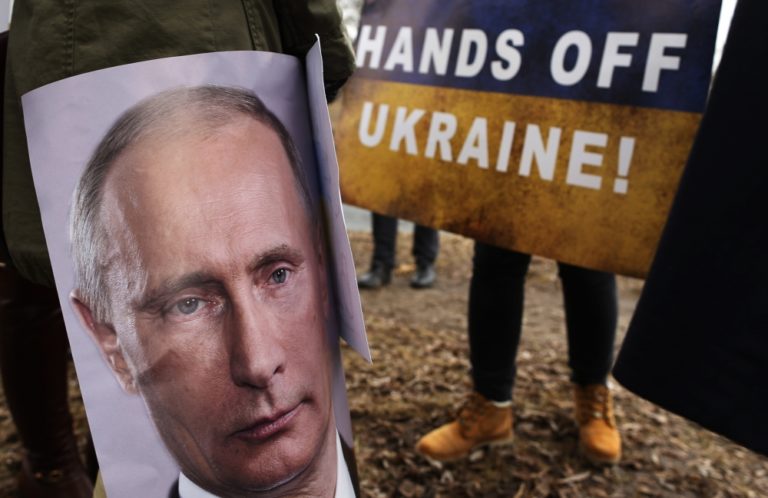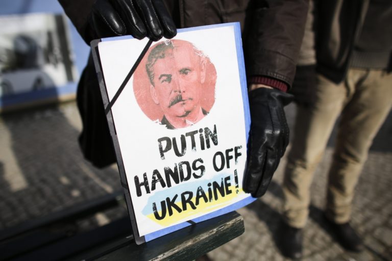 Invázia vojsk Ruska na ukrajinský Krym znepokojila celý svet. Vo viacerých miestach sveta sa protestovalo. Foto: SITA/AP
