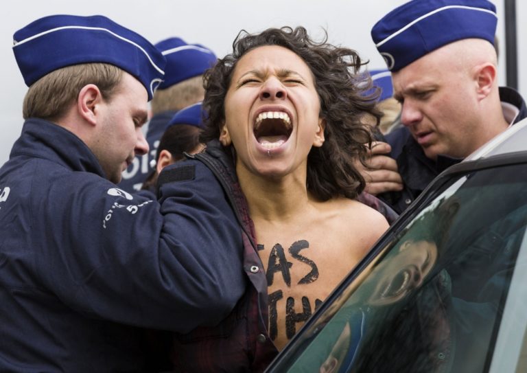 Aktivistky hnutia Femen protestovali proti dianiu na Ukrajine. Foto: SITA/AP