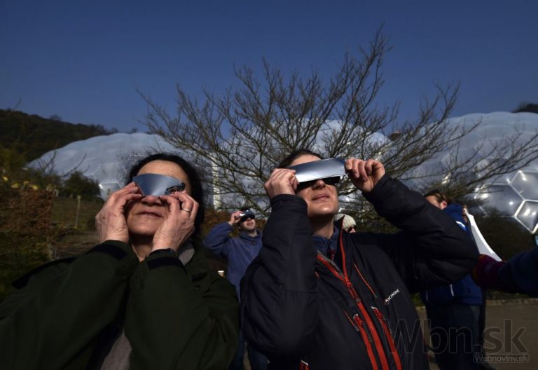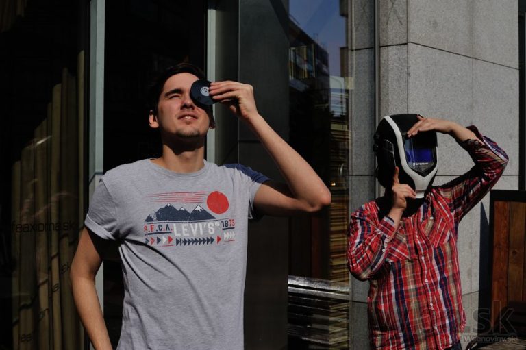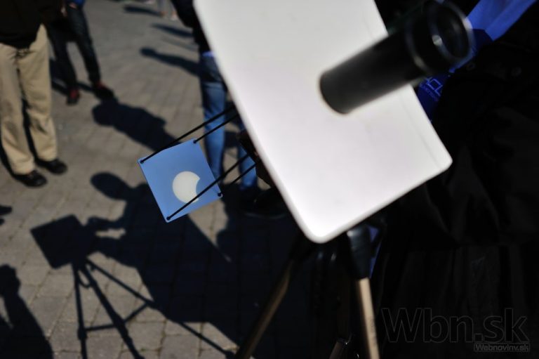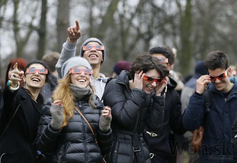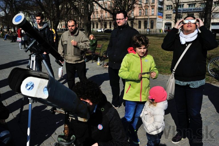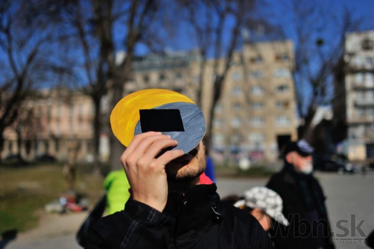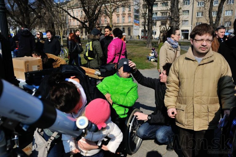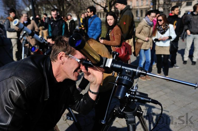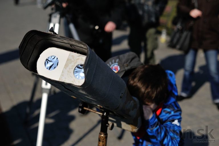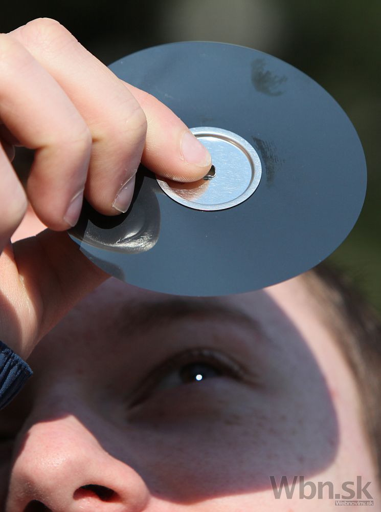 Na viacerých miestach Slovenska pozorovali ľudia čiastočné zatmenie Slnka (20. marca 2015) Foto: SITA/Robert Tappert