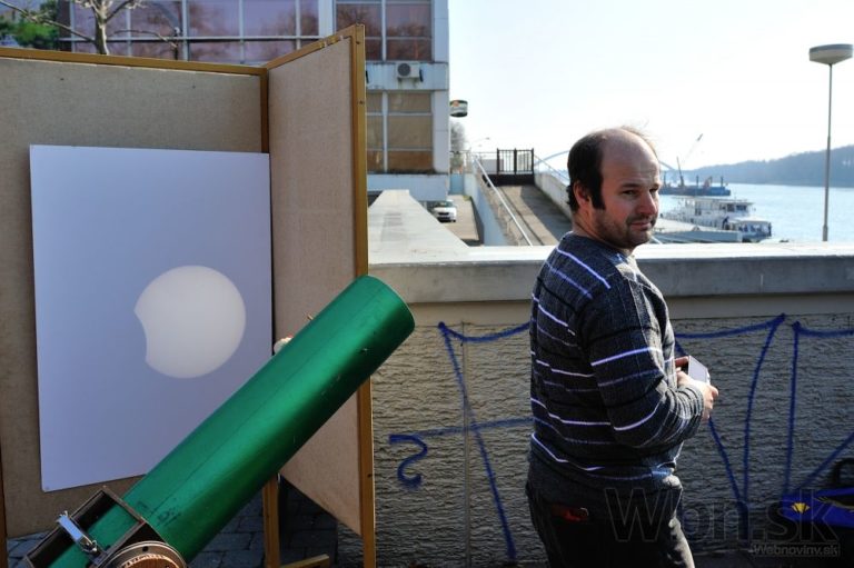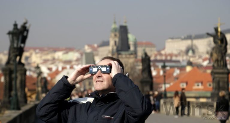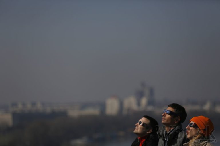 Na viacerých miestach Slovenska bolo možné sledovať čiastočné zatmenie Slnka. (20. marca 2015) Foto: SITA/Robert Tappert