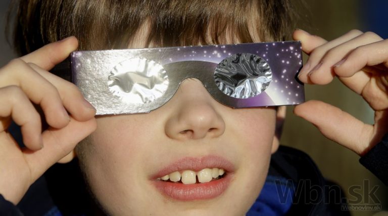 Malý chlapec sa na pozorovanie nebeského úkazu vyzbrojil ochrannými okuliarmi. (20. marca 2015) Foto: SITA/AP