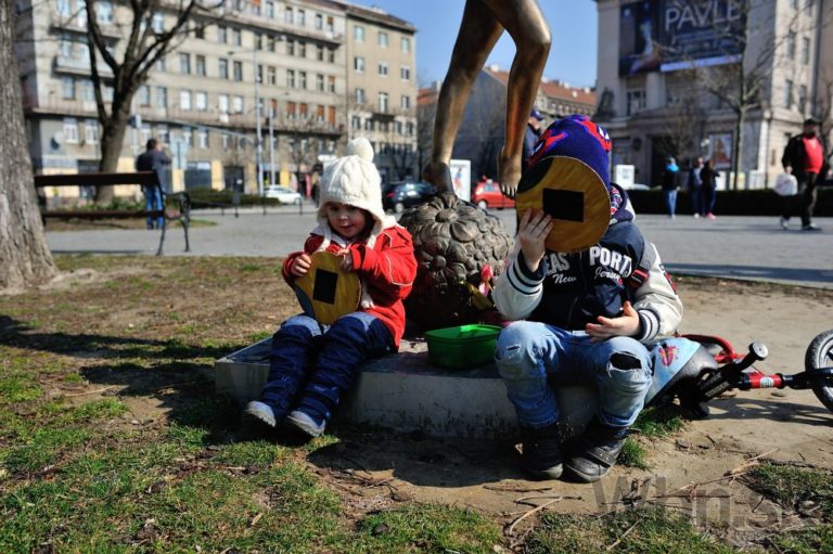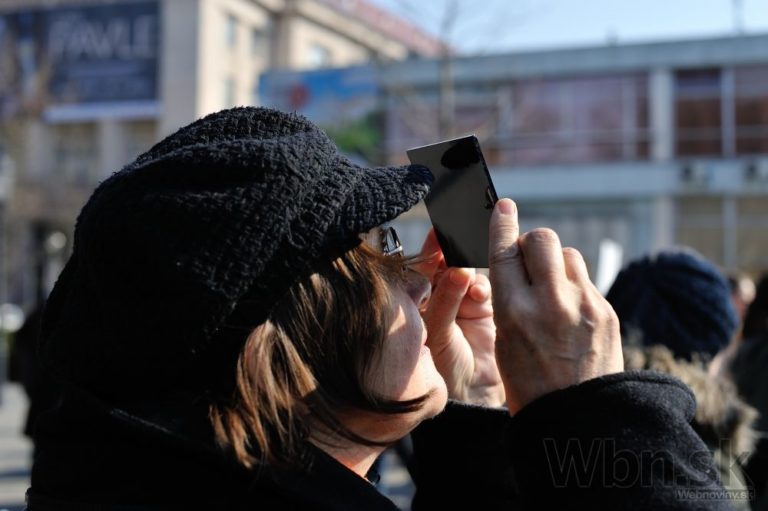 Zatmenie Slnka pozorovali Bratislavčania aj v Starom Meste. (20. marca 2015) Foto: SITA/Robert Tappert