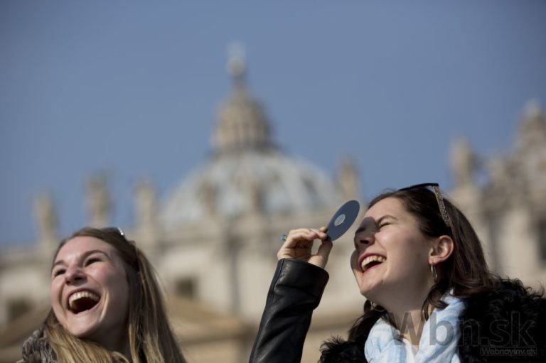 Čiastočné zatmenie Slnka sledovali aj vo Vatikáne. (20. marca 2015) Foto: SITA/AP
