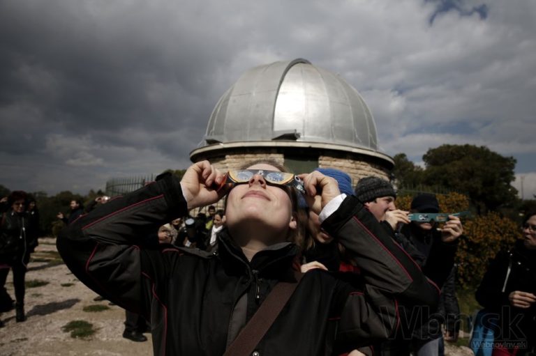 Čiastočné zatmenie Slnka bolo možné sledovať na viacerých miestach sveta. (20. marca 2015) Foto: SITA/AP