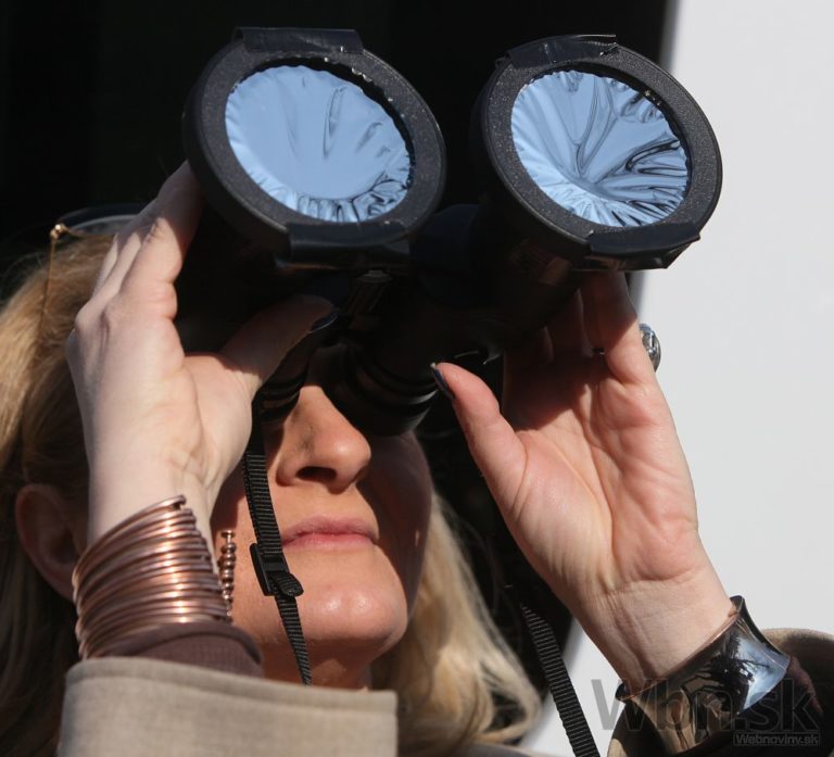 Na viacerých miestach Slovenska pozorovali ľudia čiastočné zatmenie Slnka (20. marca 2015) Foto: SITA/Kancelária prezidenta SR