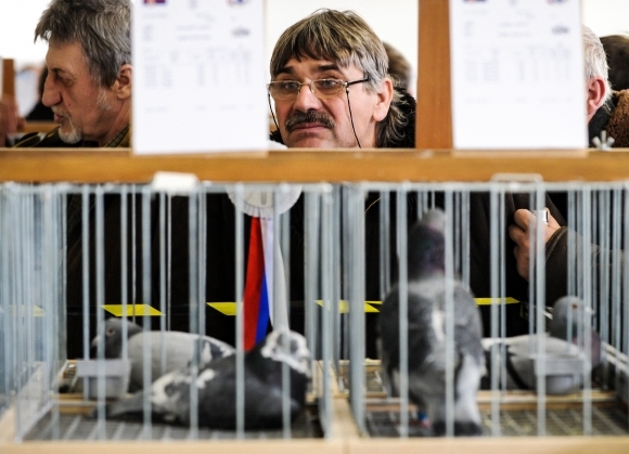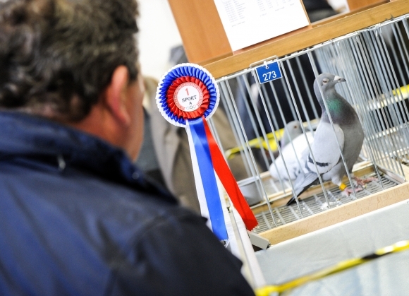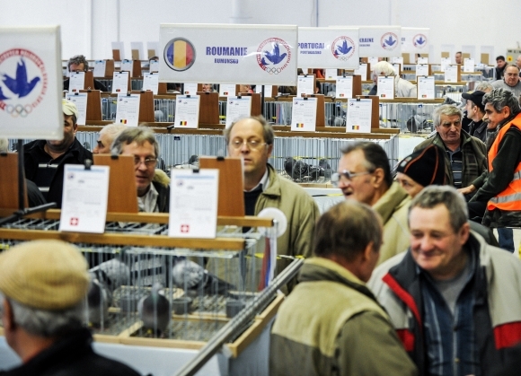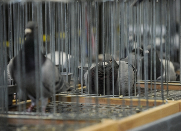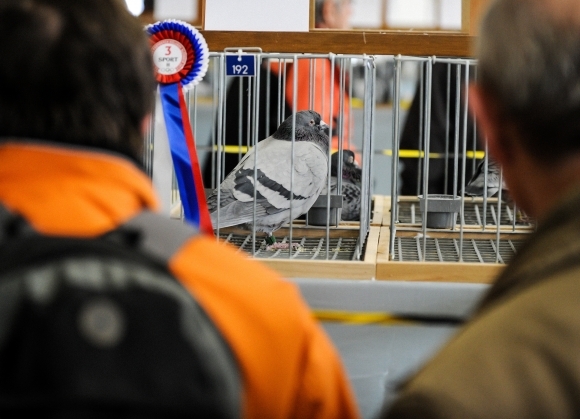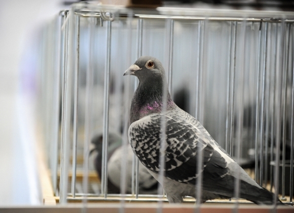 Svetová olympiáda poštových holubov Slovakia 2013, ktorá sa koná na výstavisku Agrokomplex v Nitre. Na snímke je Holub domáci (Columba livia f. domestica). Foto: SITA/Martin Havran