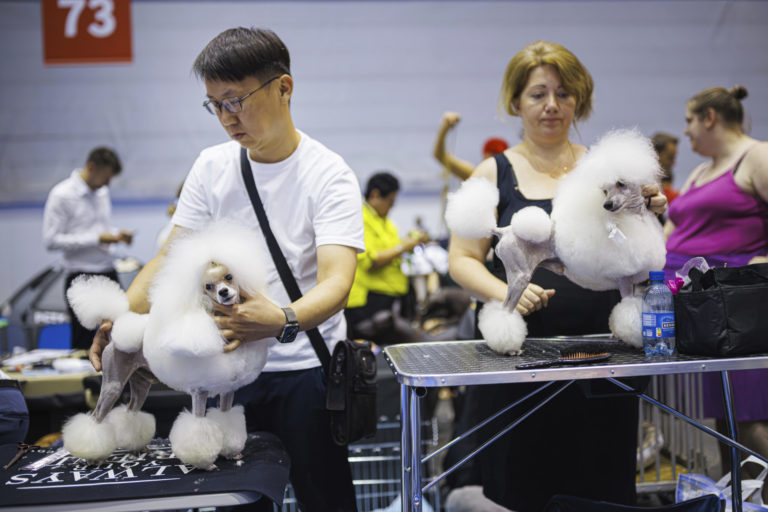 Ženeva na päť dní hostí Svetovú výstavu psov 2023, na ktorej účastníci z 80 krajín predstavujú viac ako 21 500 psov z 350 plemien. Ženeva, 26. august 2023. Foto: Valentin Flauraud/Keystone via AP.