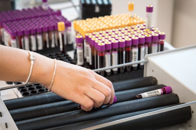 Odberové skúmavky počas darovania krvi pri príležitosti Svetového dňa darcov krvi 2018 pod záštitou Ministerstva vnútra SR v Nemocnici sv. Michala. Bratislava, 14. jún 2018. Foto: SITA/Diana Černáková