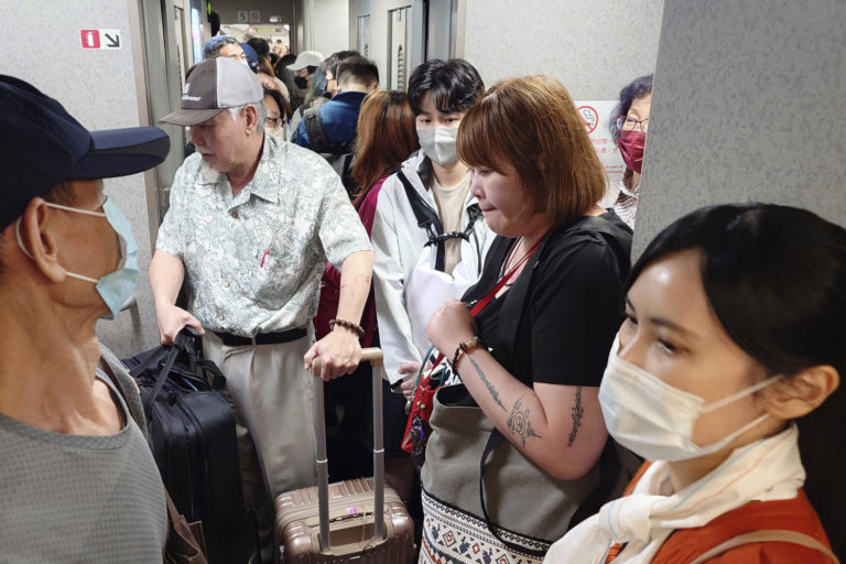Cestujúci si zbalili veci, aby nasadli na vlak smerujúci na juh po ničivom zemetrasení na Taiwane. Udrelo s magnitúdom 7,4 počas rannej špičky a bolo najsilnejšie za ostatné štvrťstoročie. Foto: SITA/AP.