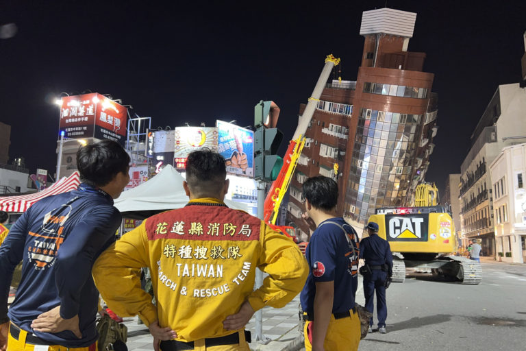 Silné zemetrasenie na Taiwane si vyžiadalo životy najmenej deviatich ľudí a niekoľko stoviek zranených. Udrelo s magnitúdom 7,4 počas rannej špičky a bolo najsilnejšie za ostatné štvrťstoročie. Foto: National Fire Agency via AP.