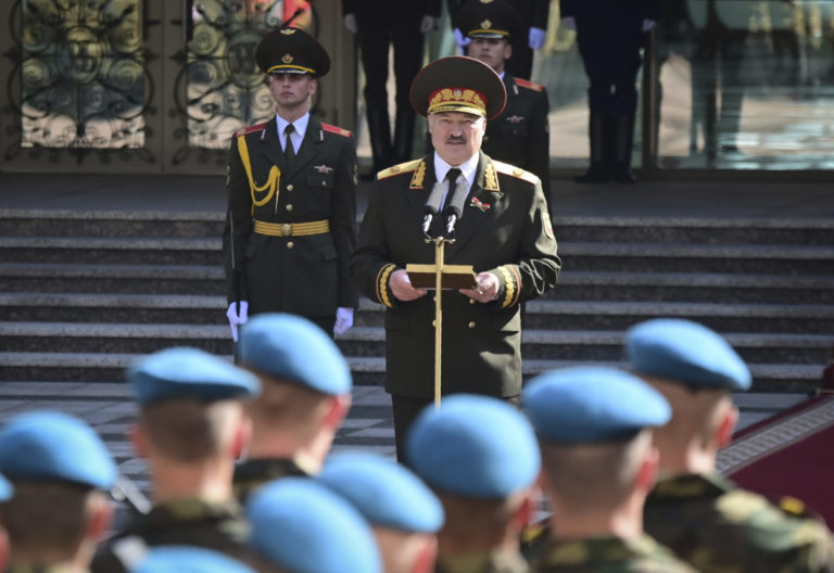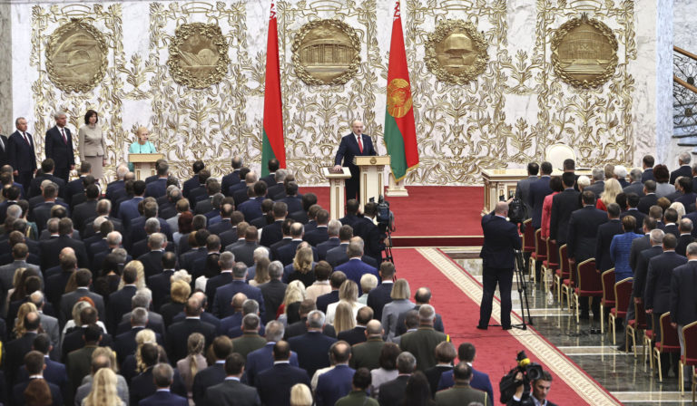Bieloruský prezident Alexander Lukašenko zložil prezidentskú prísahu bez predošlého verejného oznámenia. Foto: SITA/AP