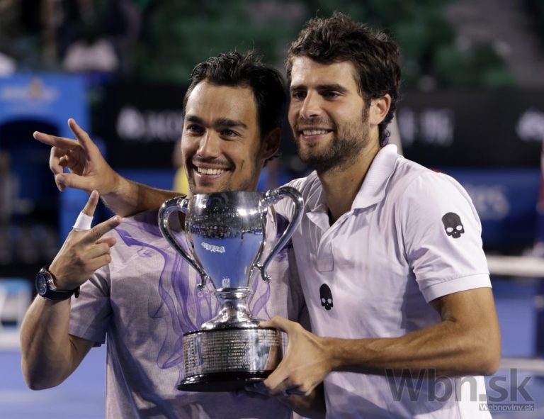 Talianski tenisti Simone Bolelli (vpravo) a Fabio Fognini zvíťazili vo finále nad Francúzmi Pierrom-Huguesom Herbertom a Nicolasom Mahutom. Foto: SITA/AP