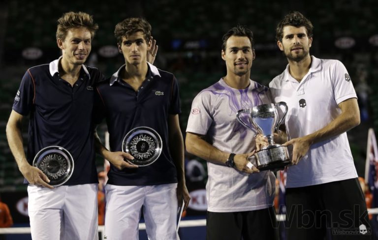 Talianski tenisti Simone Bolelli (vpravo) a Fabio Fognini zvíťazili vo finále nad Francúzmi Pierrom-Huguesom Herbertom (vľavo) a Nicolasom Mahutom (vpravo). Foto: SITA/AP