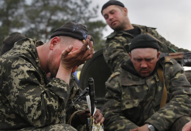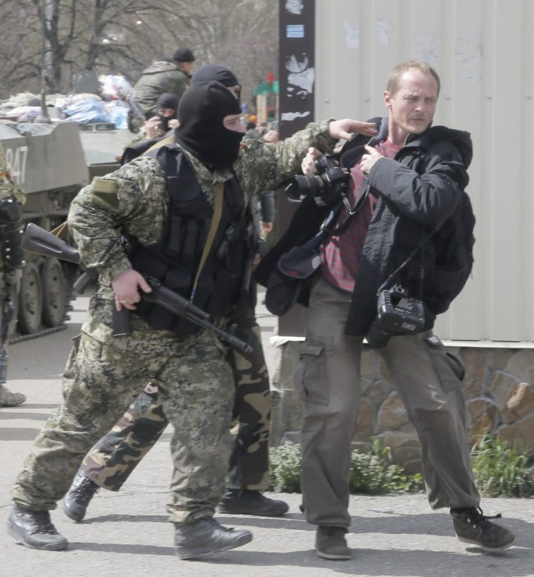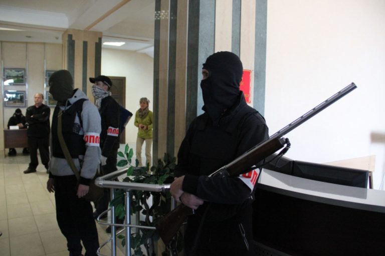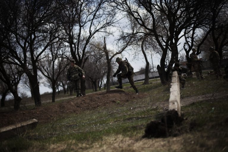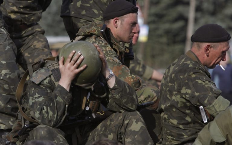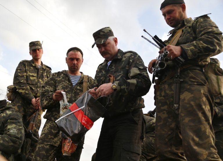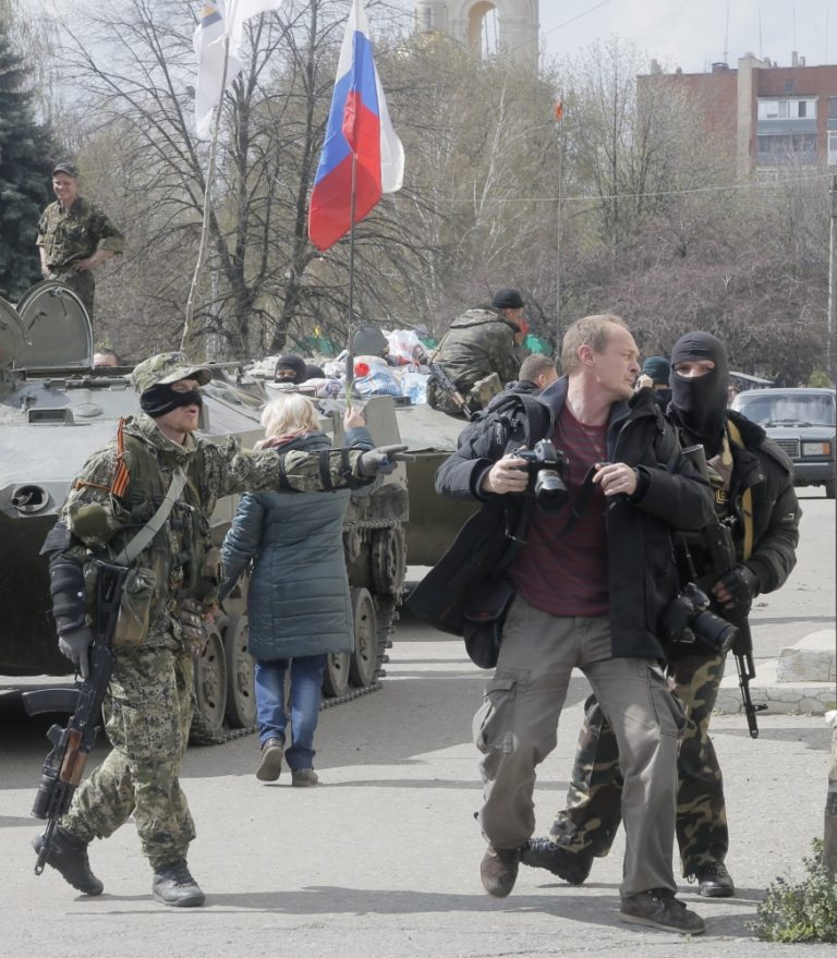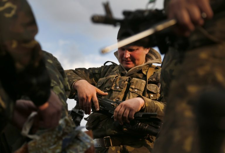 Po meste Kramatorsk na východe Ukrajiny sa v obrnených armádnych vozidlách s ruskou vlajkou premávajú neidentifikovaní vojaci.