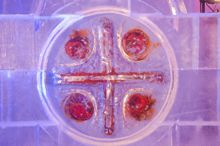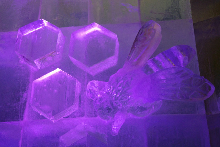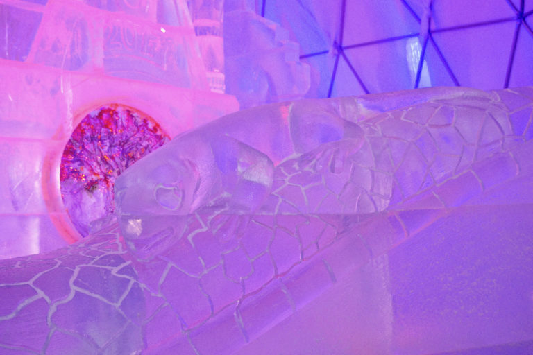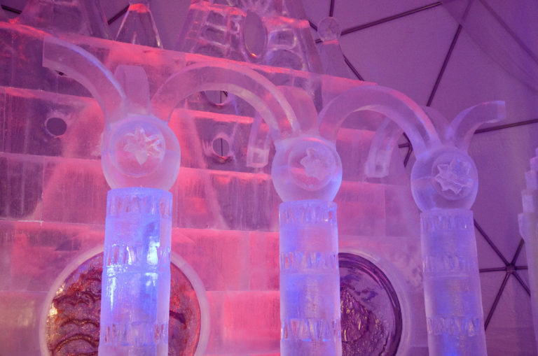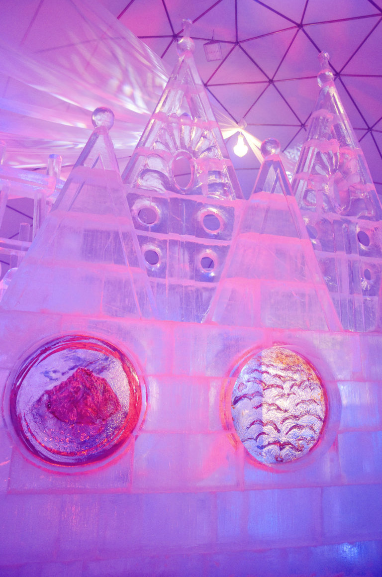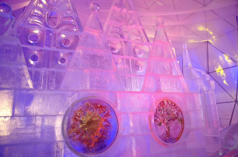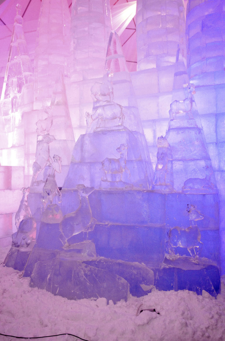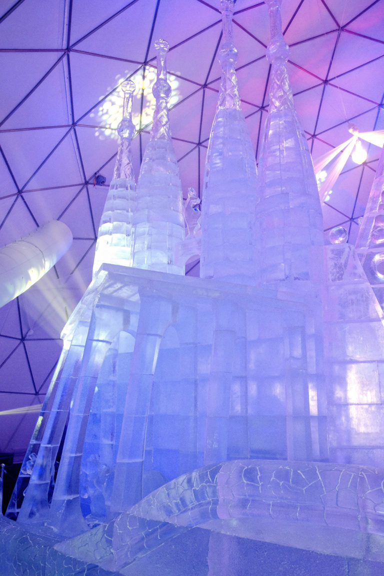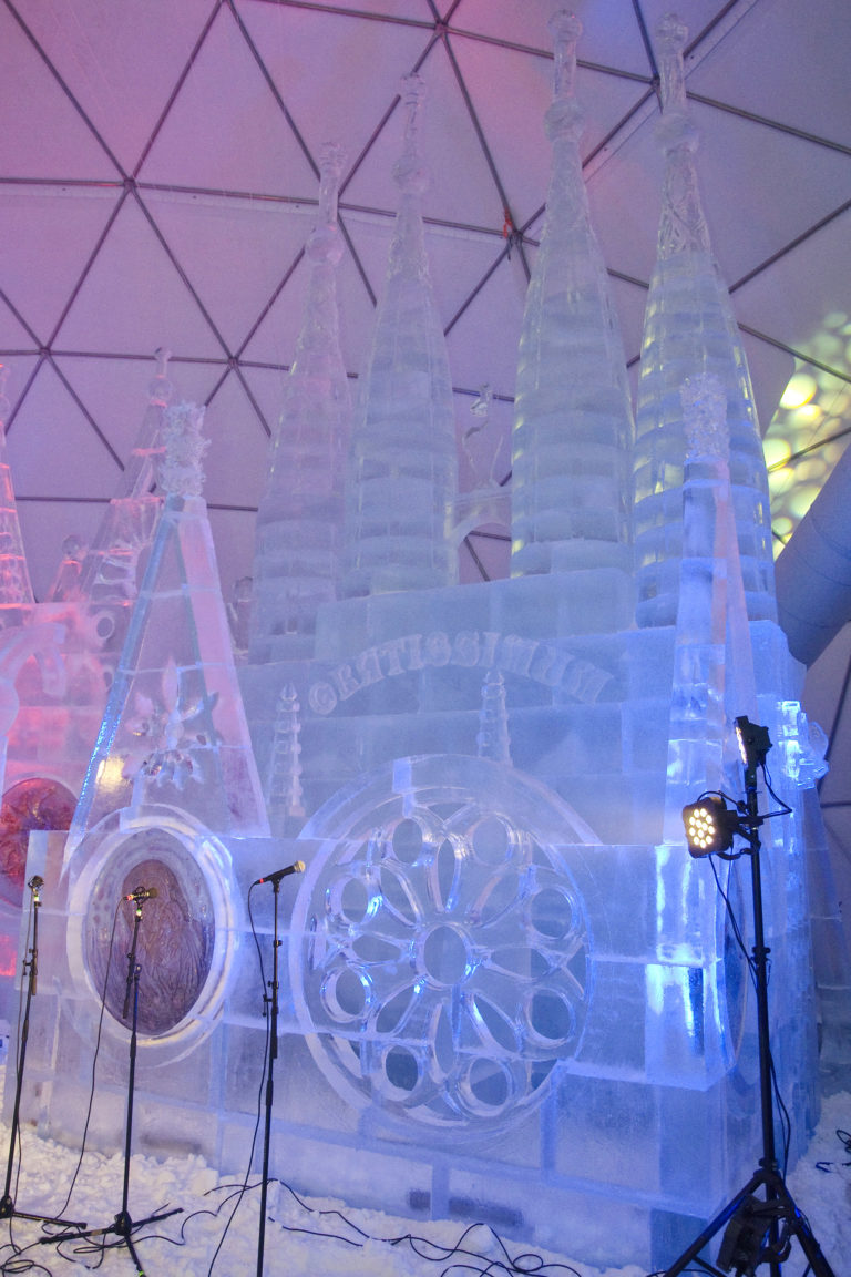 Pohľad do interiéru Tatranského ľadového dómu na Hrebienku vo Vysokých Tatrách pred jeho slávnostným otvorením. Tento rok sa stavitelia inšpirovali masívnou rímskokatolíckou bazilikou v španielskej Barcelone Sagrada Familia, ktorá je monumentálnym dielom Antonia Gaudího. Ústrednou témou je pocta rodine. Vysoké Tatry, 7. december 2017. Foto: SITA/Radoslav Maťaš.